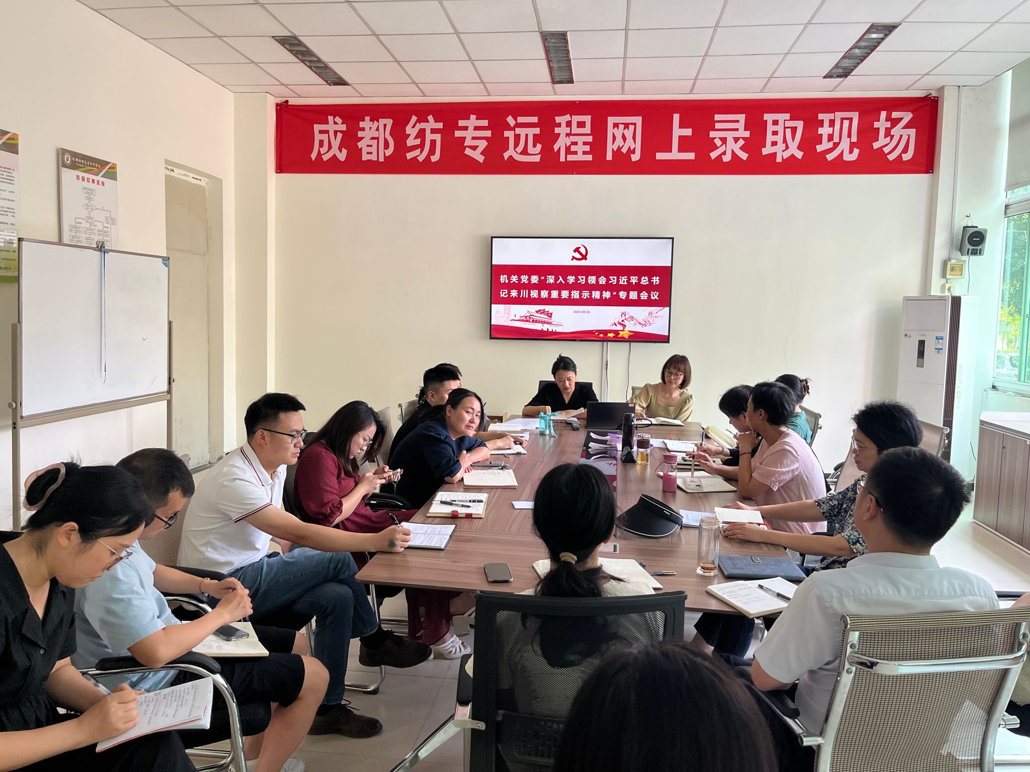 9月5日下午,机关党委在综合楼一楼召开机关党委“深入学习领会习近平总书记来川视察重要指示精神”专题会议暨新学期工作部署会议,会议由机关党委书记刘东渝主持。